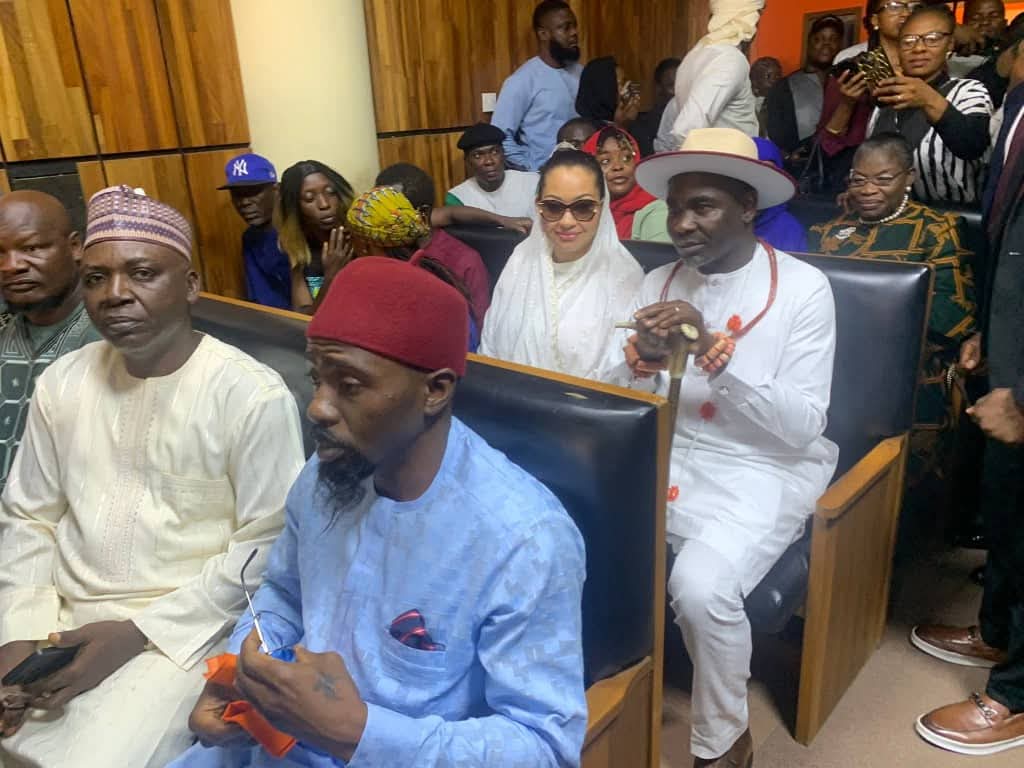 Natasha, who is currently facing a storm over allegation she made that Senate President Godswill Akpabio and former governor Yahaya Bello plan to assassinate her, arrived the court along with her husband.