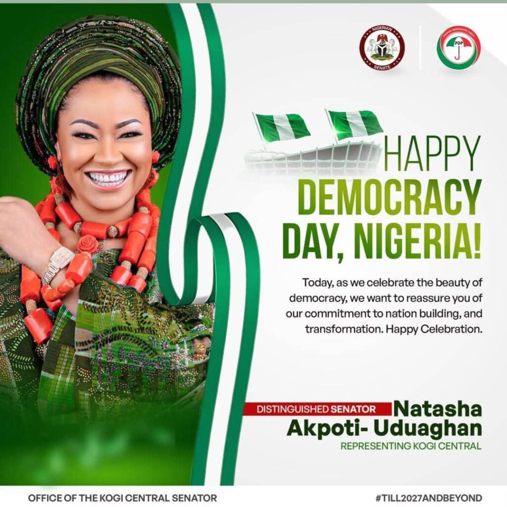 As Nigeria commemorates Democracy Day, Senator Natasha Akpoti Uduaghan has called on Nigerians to uphold the ideals of justice, equity, inclusion, and national unity, insisting that democracy must yield tangible benefits beyond elections.